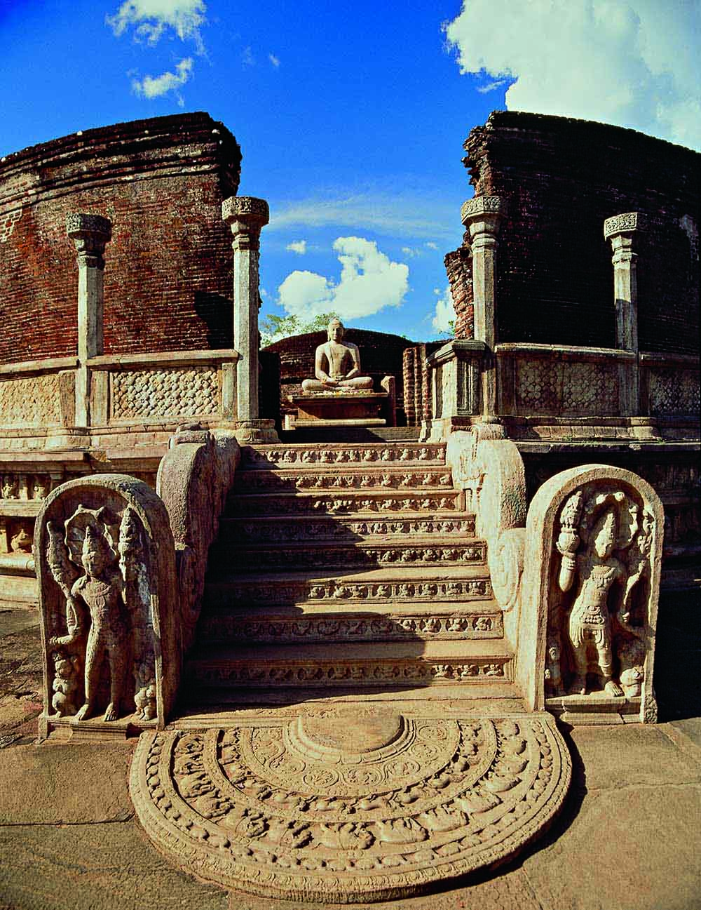 11th Century AD Polonnaruwa: The island’s Medieval Capital (11th – 13th Centuries AD) which rose to fame after the decline of Anuradhapura. The city was fortified with three concentric walls, beautified with parks and gardens and sanctified by many shrines. A unique Irrigation complex watered the city as well as the surrounding plains helping in agriculture which made the island "the Grainery of the East" . The largest of the man made reservoirs, the huge Parakrama Samudra (the Sea of Parakrama), is larger in size than the Colombo Harbour. Polonnaruwa is home to two magnificent World Heritage Sites and numerous other sites of archaoelogicl and historical interest , some of which depict the influence that Hinduism had on the Buddhist Civilisation during that period of history.