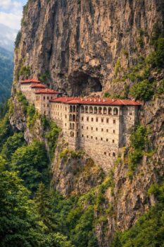 After breakfast, transfer to the airport for your domestic flight to Trabzon, located along the scenic Black Sea coast. Upon arrival, transfer to your hotel. Begin your exploration with a visit to the breathtaking Sumela Monastery, an ancient monastery dramatically perched on a steep cliff within a lush national park. Admire its unique architecture and historic frescoes while enjoying panoramic mountain views. Continue with scenic drives through the region, discovering the natural beauty and cultural richness of northeastern Turkey.